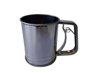 Кухоль сито для просіювання борошна з нержавіючої сталі з ручкою Чашка сито для борошна механічна D 10 cm H 12 cm