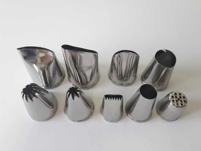 Набір кондитерських насадок для крему та прикраси тортів з нержавіючої сталі 9 штук великі D 2,5 cm D 3,8 cm