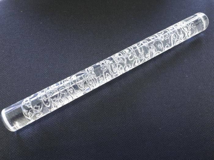 Скалка кондитерська текстурная прозора з візерунком акрилова для мастики L 30 cm D 3 cm