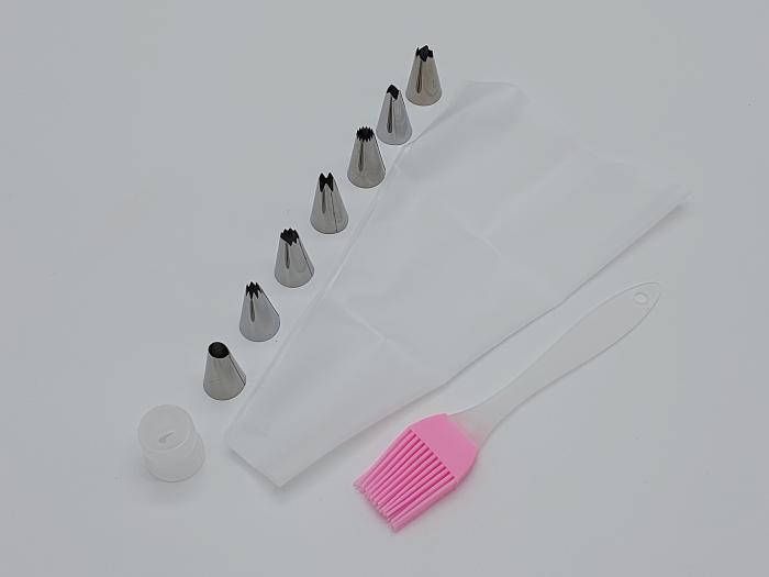 Мішок кондитерський силіконовий багаторазовий для крему з металевими насадками 7 шт перехідником і пензликом