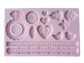 Молд силіконовий кондитерський для мастики та шоколаду Серце та Квіти 12,5*19,5 cm